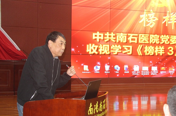 11月10日晚,根據(jù)南陽市委市直工委通知精神,南石醫(yī)院黨群工作部組織醫(yī)院全體黨員集中收視學(xué)習(xí)了由中央組織部、中央廣播電視總臺(tái)聯(lián)合錄制的以“不忘初心,牢記使命”為主題的《榜樣3》專題節(jié)目。南石醫(yī)院黨委委員,副院長梁紅春代表醫(yī)院黨委在節(jié)目開始前發(fā)表講話。